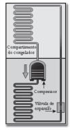 A invenção da geladeira proporcionou uma revolução no aproveitamento dos alimentos, ao permitir que fossem armazenados e transportados por longos períodos. A figura apresentada ilustra o processo cíclico de funcionamento de uma geladeira, em que um gás no interior de uma tubulação é forçado a circular entre o congelador e a parte externa da geladeira. É por meio dos processos de compressão, que ocorre na parte externa, e de expansão, que ocorre na parte interna, que o gás proporciona a troca de calor entre o interior e o exterior da geladeira.