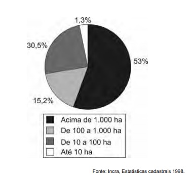 O gráfico representa a relação entre o tamanho e a totalidade dos imóveis rurais no Brasil. Que característica da estrutura fundiária brasileira está evidenciada no gráfico apresentado?