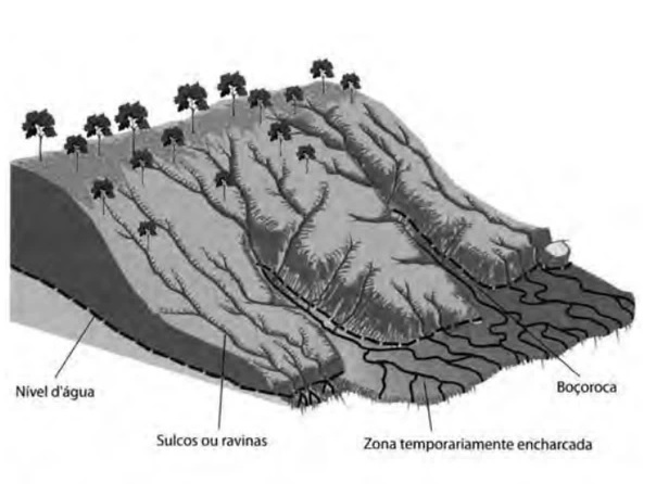 O esquema representa um processo de erosão em encosta. Que prática realizada por um agricultor pode resultar em aceleração desse processo?