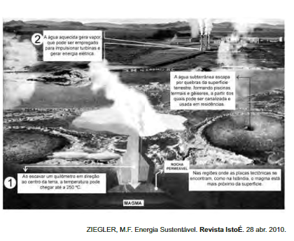 A fonte de energia representada na figura, considerada uma das mais limpas e sustentáveis do mundo, é extraída do calor gerado
