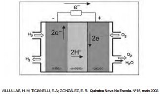 Com base no texto e na figura, a produção de energia elétrica por meio da célula a combustível hidrogênio/oxigênio diferencia-se dos processos convencionais porque