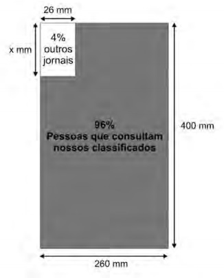 Para que a propaganda seja fidedigna à porcentagem da área que aparece na divulgação, a medida do lado do retângulo que representa os 4%, deve ser de aproximadamente