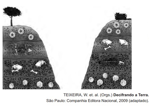 O esquema mostra depósitos em que aparecem fósseis de animais do Período Jurássico. As rochas em que se encontram esses fósseis são