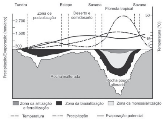 Tropicais ocorre menor pluviosidade, o que se relaciona com a menor profundidade das rochas inalteradas.