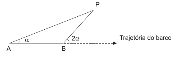 Suponha que o navegante tenha medido o ângulo α = 30° e, ao chegar ao ponto B, verificou que o barco havia percorrido a distância AB = 2 000 m.