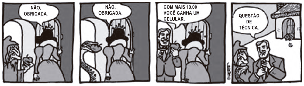 Que estratégia argumentativa leva o personagem do terceiro quadrinho a persuadir sua interlocutora?