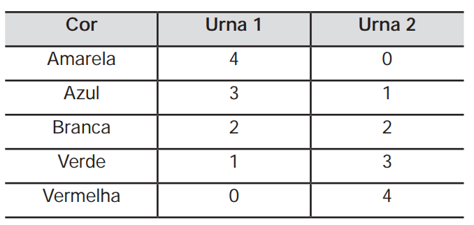 2º) ele retira, aleatoriamente, uma bola da urna 1 e a coloca na urna 2, misturando-a com as que lá estão;