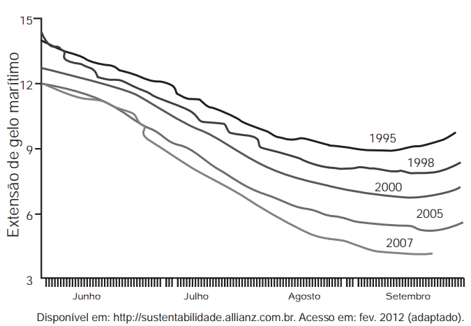 Com base no gráfico e nas informações do texto, é possível inferir que houve maior aquecimento global em