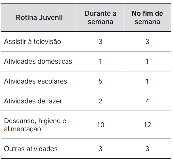 De acordo com esta pesquisa, quantas horas de seu tempo gasta um jovem entre 12 e 18 anos, na semana inteira (de segunda-feira a domingo), nas atividades escolares?
