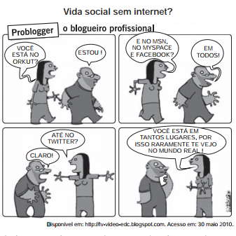 A charge revela uma crítica aos meios de comunicação, em especial à internet, porque