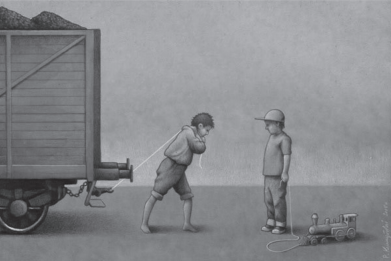 Nessa obra, ao abordar o trabalho infantil, Kuczynskiego usa sua arte para
