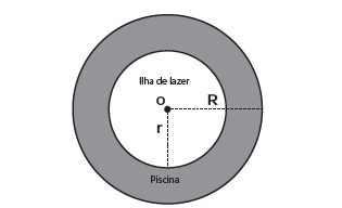 Para satisfazer as condições dadas, o raio máximo da ilha de lazer r, em metros, estará mais próximo de