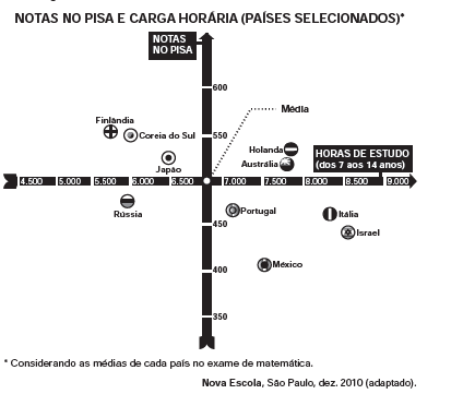 Dos países com notas abaixo da média nesse exame, aquele que apresenta maior quantidade de horas de estudo é