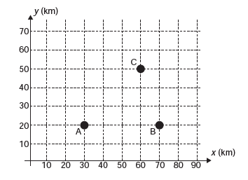 O local adequado para a construção dessa torre corresponde ao ponto de coordenadas