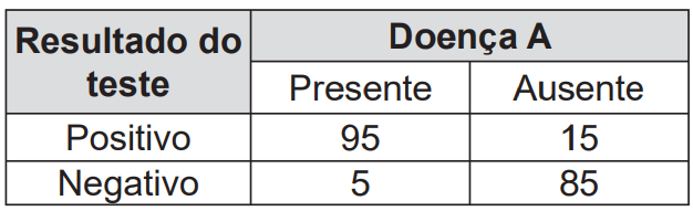 Conforme o quadro do teste proposto, a sensibilidade dele é de