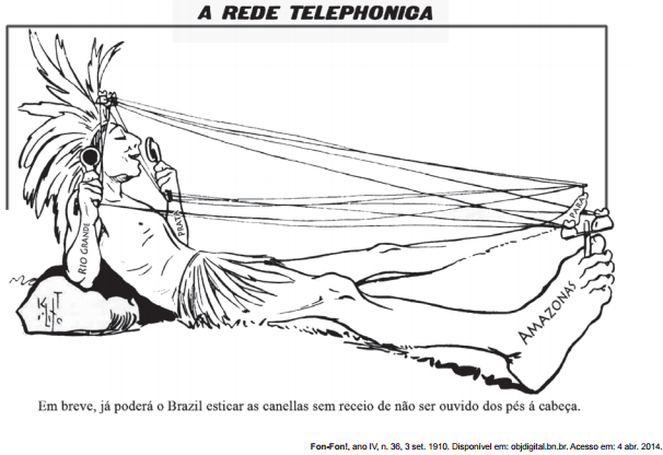 A charge, datada de 1910, ao retratar a implantação da rede telefônica no Brasil, indica que esta: