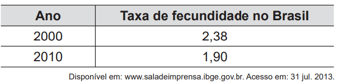 Suponha que a variação percentual relativa na taxa de fecundidade no período de 2000 a 2010 se repita no período de 2010 a 2020.