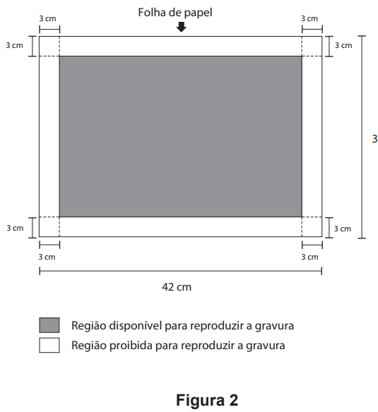 Deseja-se reproduzi-la numa folha de papel retangular com 42 cm de comprimento e 30 cm de altura, deixando livres 3 cm em cada margem, conforme a Figura 2.
