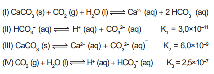 Com base nos valores das constantes de equilíbrio das reações II, III e IV a 25 oC, qual é o valor numérico da constante de equilíbrio da reação I?