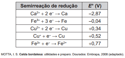 Ca2+(aq) + 2Cu+(aq) --> Ca(s) + 2Cu2+(aq)).