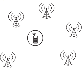 Para obter a posição de um telefone celular, a polícia baseia-se em informações do tempo de resposta do aparelho em relação às torres de celular da região de onde se originou a ligação. Em uma região, um aparelho está na área de cobertura de cinco torres, conforme o esquema