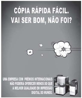 A rapidez é destacada como uma das qualidades do serviço anunciado, funcionando como estratégia de persuasão em relação ao consumidor do mercado gráfico.