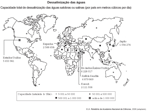 Conforme a análise do documento cartográfico, a área de concentração das usinas de dessalinização é explicada pelo(a)