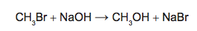 em que n corresponde ao número de mols. O metanol pode ser obtido pela reação entre brometo de metila e hidróxido de sódio, conforme a equação química: