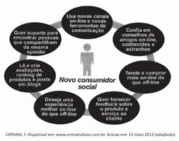 O consumidor do século XXI, chamado de novo consumidor social, tende a se comportar de modo diferente do consumidor tradicional. Pela associação das características apresentadas no diagrama, infere-se que esse novo consumidor sofre influência da