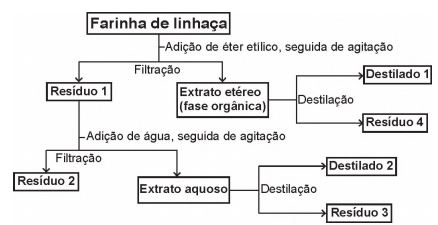 Considere o esquema, que resume um processo de separação dos componentes principais da farinha de linhaça dourada.