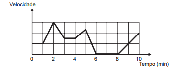 Os congestionamentos de trânsito constituem um problema que aflige, todos os dias, milhares de motoristas brasileiros. O gráfico ilustra a situação, representando, ao longo de um intervalo definido de tempo, a variação da velocidade de um veículo durante um congestionamento.