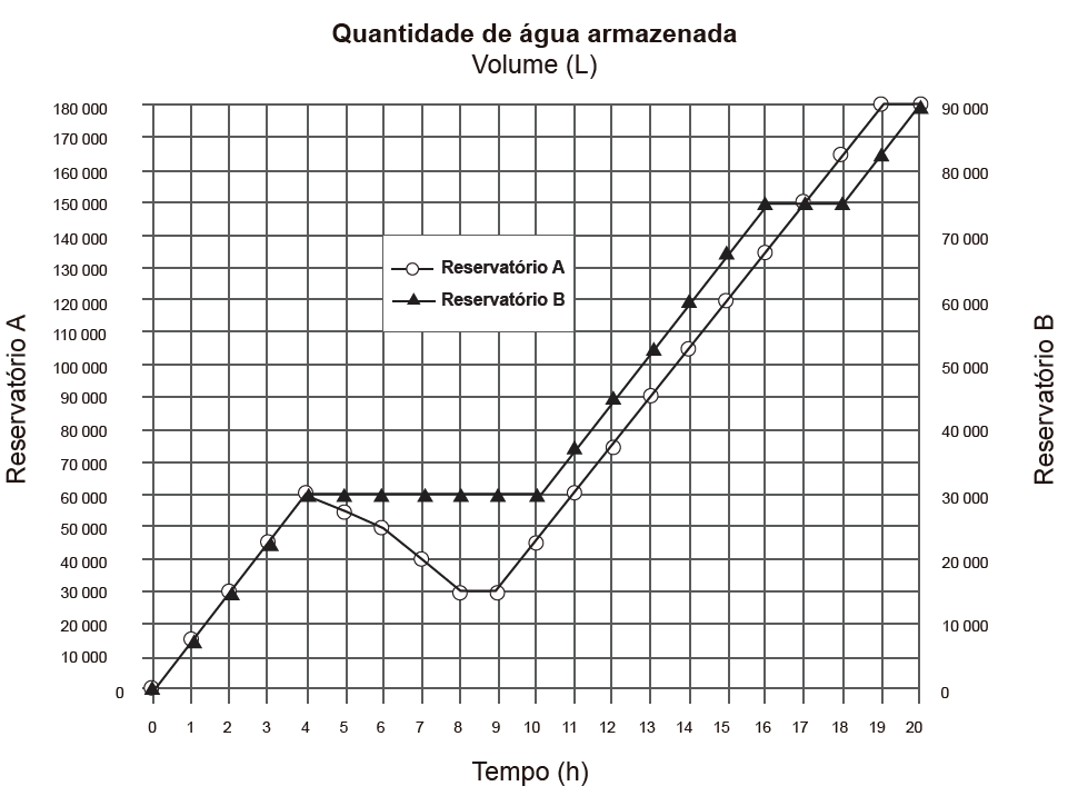 O número de horas em que os dois reservatórios contêm a mesma quantidade de água é