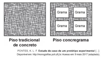 Para se adequar às normas ambientais atuais, as construtoras precisam prever em suas obras a questão do uso de materiais de modo a minimizar os impactos causados no local. Entre esses materiais está o chamado concregrama ou pisograma, que é um tipo de revestimento composto por peças de concreto com áreas vazadas, preenchidas com solo gramado. As figuras apresentam essas duas formas de piso feitos de concreto.