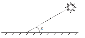 Raios de luz solar estão atingindo a superfície de um lago formando um ângulo X com a sua superfície, conforme indica a figura.