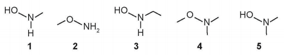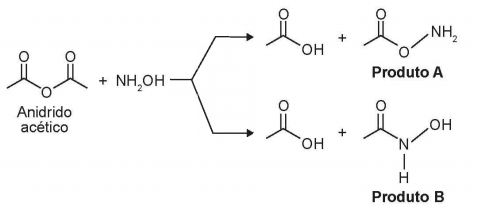 O produto A é favorecido em relação ao B, por um fator de. Em um estudo de possível substituição do uso de hidroxilamina, foram testadas as moléculas numeradas de 1 a 5.