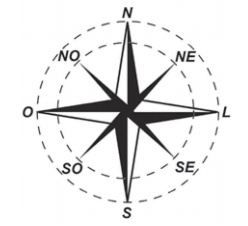 A rosa dos ventos é uma figura que representa oito sentidos, que dividem o círculo em partes iguais.
