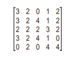 Um professor aplica, durante os cinco dias úteis de uma semana, testes com quatro questões de múltipla escolha a cinco alunos. Os resultados foram representados na matriz.