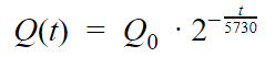 Enquanto um ser está vivo, a quantidade de carbono 14 nele existente não se altera. Quando ele morre, essa quantidade vai diminuindo. Sabe-se que a meia-vida do carbono 14 é de 5 730 anos, ou seja, num fóssil de um organismo que morreu há 5 730 anos haverá metade do carbono 14 que existia quando ele estava vivo. Assim, cientistas e arqueólogos usam a seguinte fórmula para saber a idade de um fóssil encontrado:  em que t é o tempo, medido em ano, Q(t) é a quantidade de carbono 14 medida no instante t e Q0 é a quantidade de carbono 14 no ser vivo correspondente.