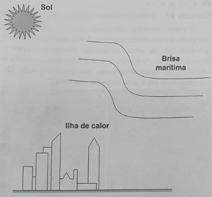 Na cidade de São Paulo, as ilhas de calor são responsáveis pela alteração da direção do fluxo da brisa marítima que deveria atingir a região de mananciais. Mas, ao cruzar a ilha de calor, a brisa marítima agora encontra um fluxo de ar vertical, que transfere para ela energia térmica absorvidas das superfícies quentes da cidade, deslocando-a para altas altitudes. Dessa maneira, há condensação e chuvas fortes no centro da cidade, em vez de na região de mananciais. A imagem apresenta os três subsistemas que trocam energia nesse fenômeno.