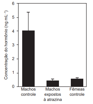 de sapos machos expostos à atrazina, um herbicida, com