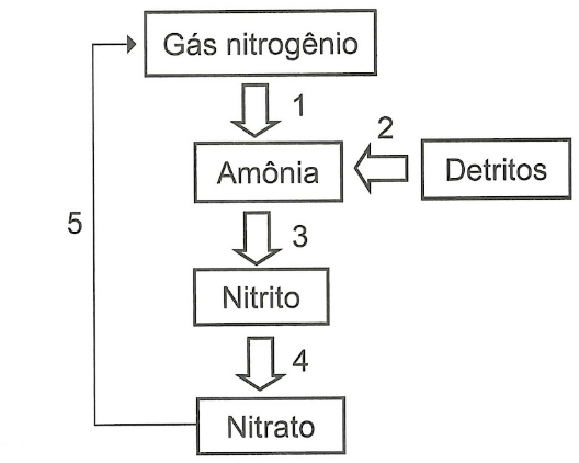O ciclo do nitrogênio é composto por várias etapas, conforme a figura, sendo cada uma desempenhada por um grupo específico de microrganismos.