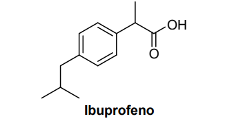 Entre os medicamentos mais comuns consumidos para o alívio da dor está o ibuprofeno, um composto quiral com ação anti-inflamatória e efeito analgésico, que é comercializado como fármaco opticamente puro, ou seja, sem a mistura com outro isômero óptico. A fórmula estrutural plana do ibuprofeno é: