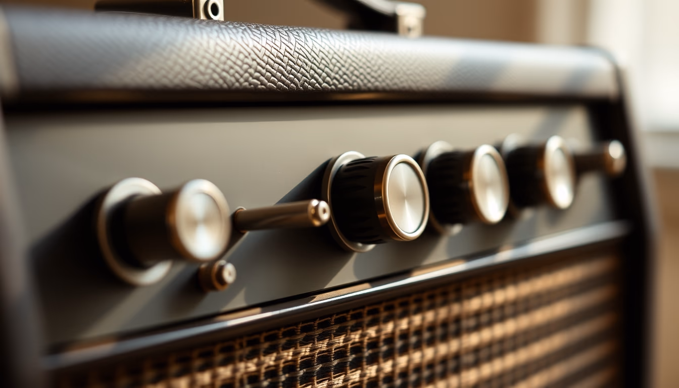 Editorial image of amplifier vintage knobs, magazine editorial.