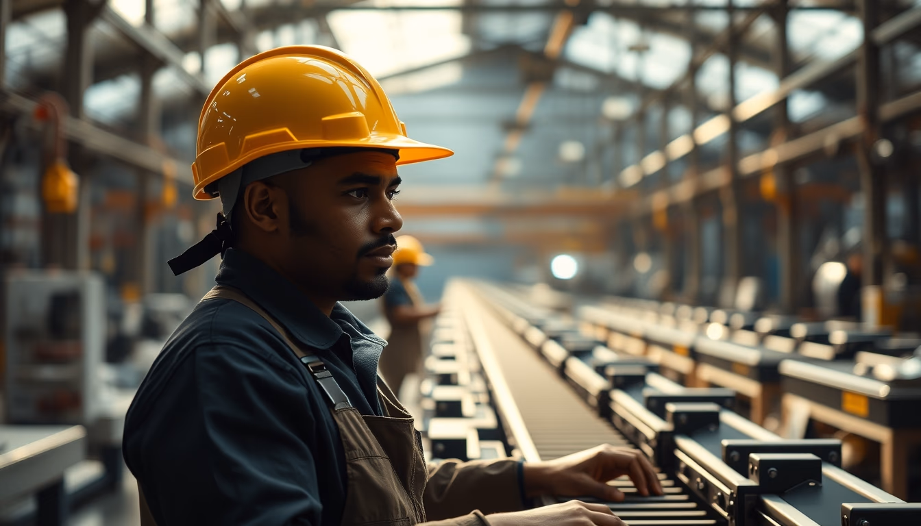 <a href="https://xn--utiliza-eza.com/en/imagens/brazilian-factory-worker-on-assembly-line-with-safety-helmet-symmetric-bright-midday-3">Brazilian factory worker on assembly line with safety helmet</a> by <a href="https://xn--utiliza-eza.com">UtilizAí</a>, licensed under <a href="https://creativecommons.org/licenses/by/4.0/">CC BY 4.0</a>.