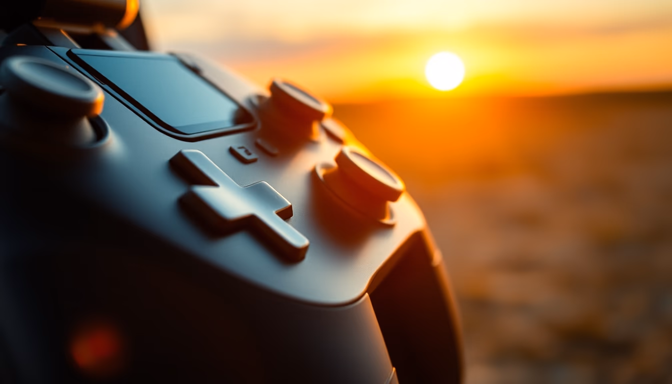 Editorial image of controller closeup macro, cinematic wide shot.