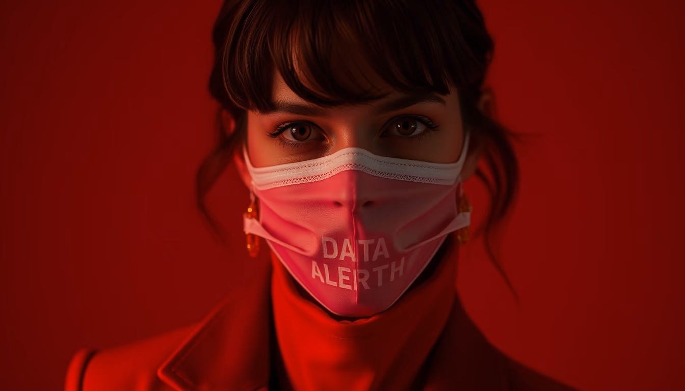 Editorial image of data breach alert red, high fashion editorial.