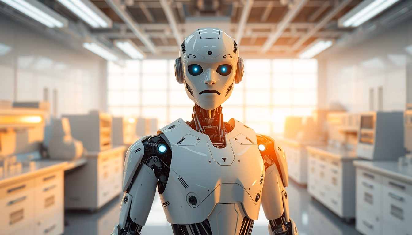 Humanoid robot in clean white lab