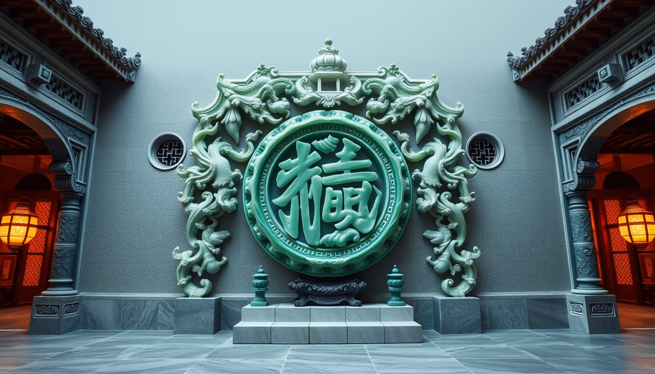 Editorial image of jade carved chinese, architectural photography.