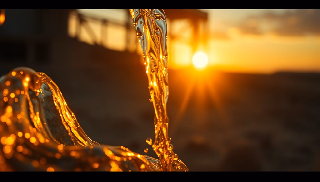 Editorial image of liquid metal flowing, cinematic wide shot.