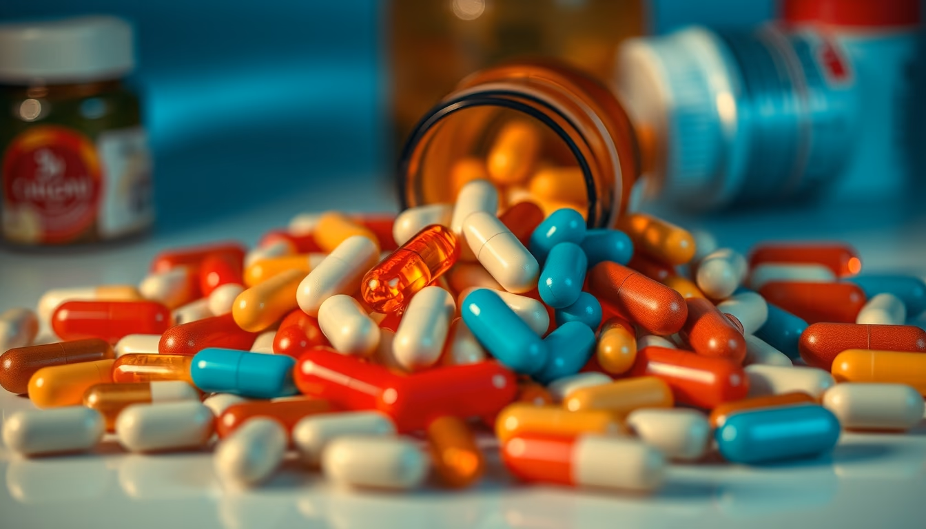 medication pills assortment colorful in editorial style